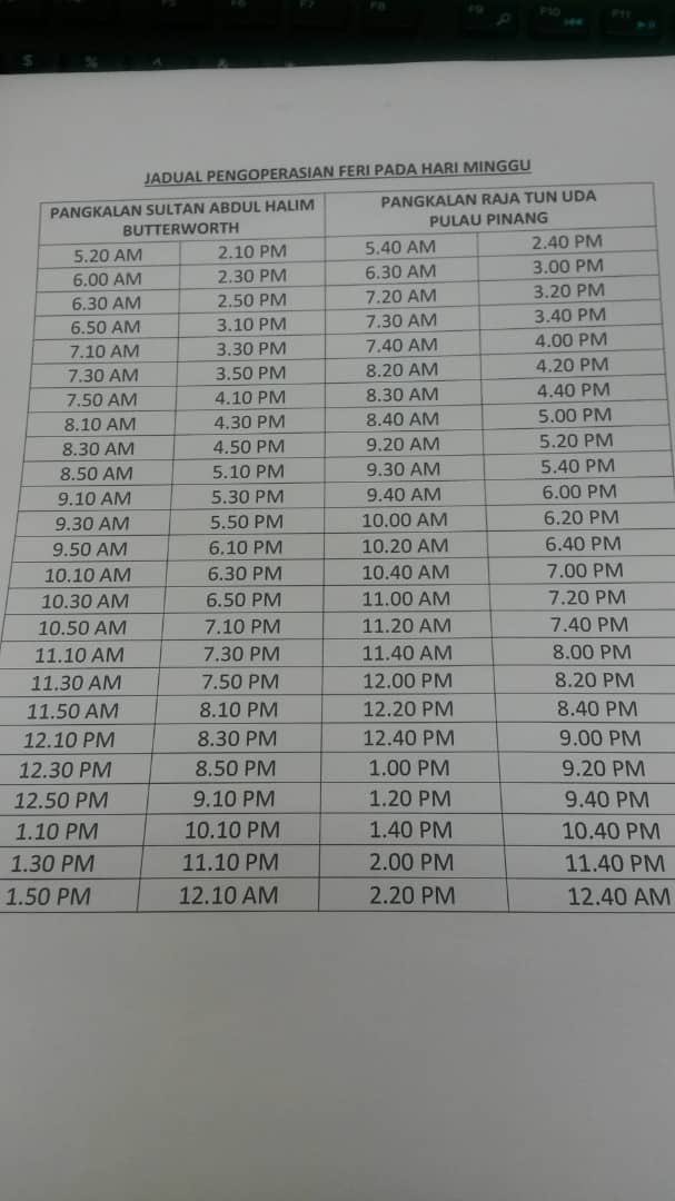 Jadual masa perkhidmatan feri pulau pinang harga tambang feri pulau pinang apa yang menarik. Sila rujuk jadual perjalanan feri di bawah. Ground Floor Bangunan Suruhanjaya.