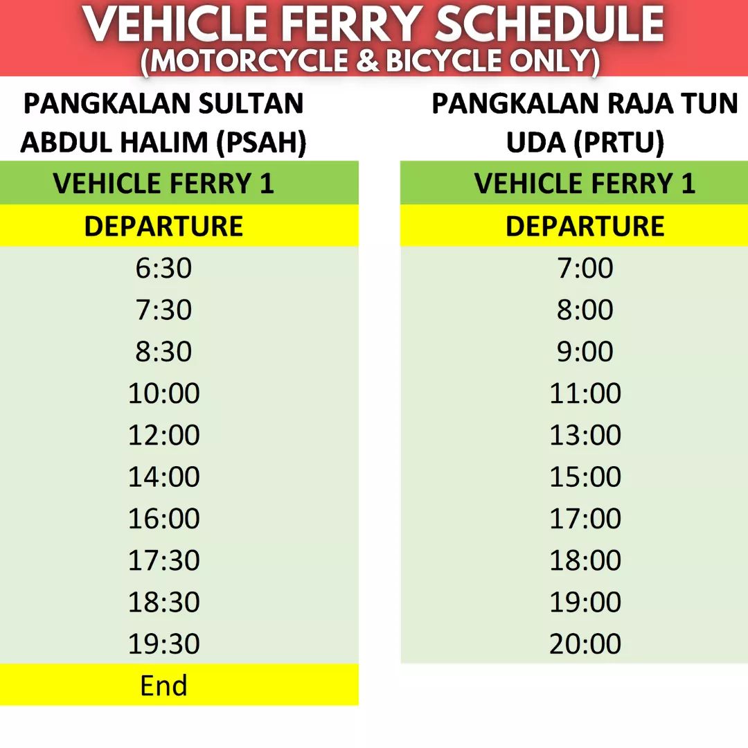 Jadual feri bawa kenderaan ke langkawi dari jeti kuala. Muat turun dan pasang 1topspy. GEORGE TOWNSelepas 126 tahun menjadi pengangkutan tertua di Pulau Pinang perkhidmatan ikonik feri sebagai alternatif laluan dari Seberang Perai untuk ke bahagian pulau atau.